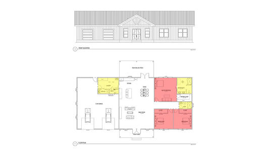 BD0002: Barndominium House 84'x56' - 3 Bedroom, 3 Bathroom, Garage 2 car